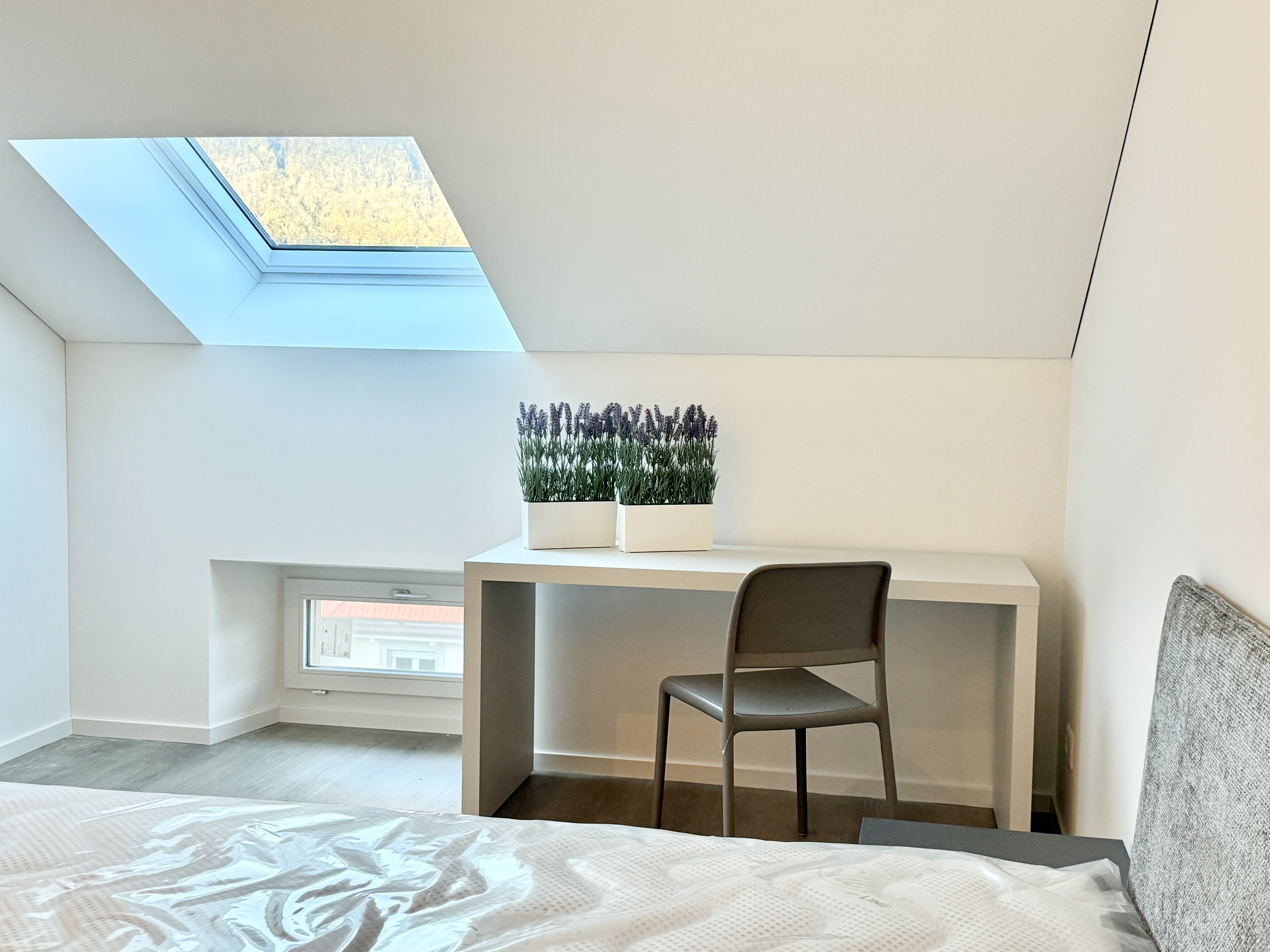 In affitto, appartamenti di 2 1/2 e 3 ½ locali arredati con gusto e armonia, e una luminosa mansarda di 4.5 locali. La disposizione degli spazi interni garantisce un ambiente comodo e ben organizzato con tanti armadi a muro e grandi cucine.